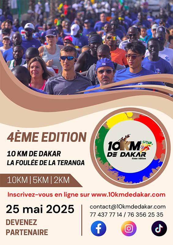 Inscrivez-vous en ligne sur www.10kmdedakar.com Contact : +221 77 437 77 14 / + 221 76 356 25 35 contact@10kmdedakar.com